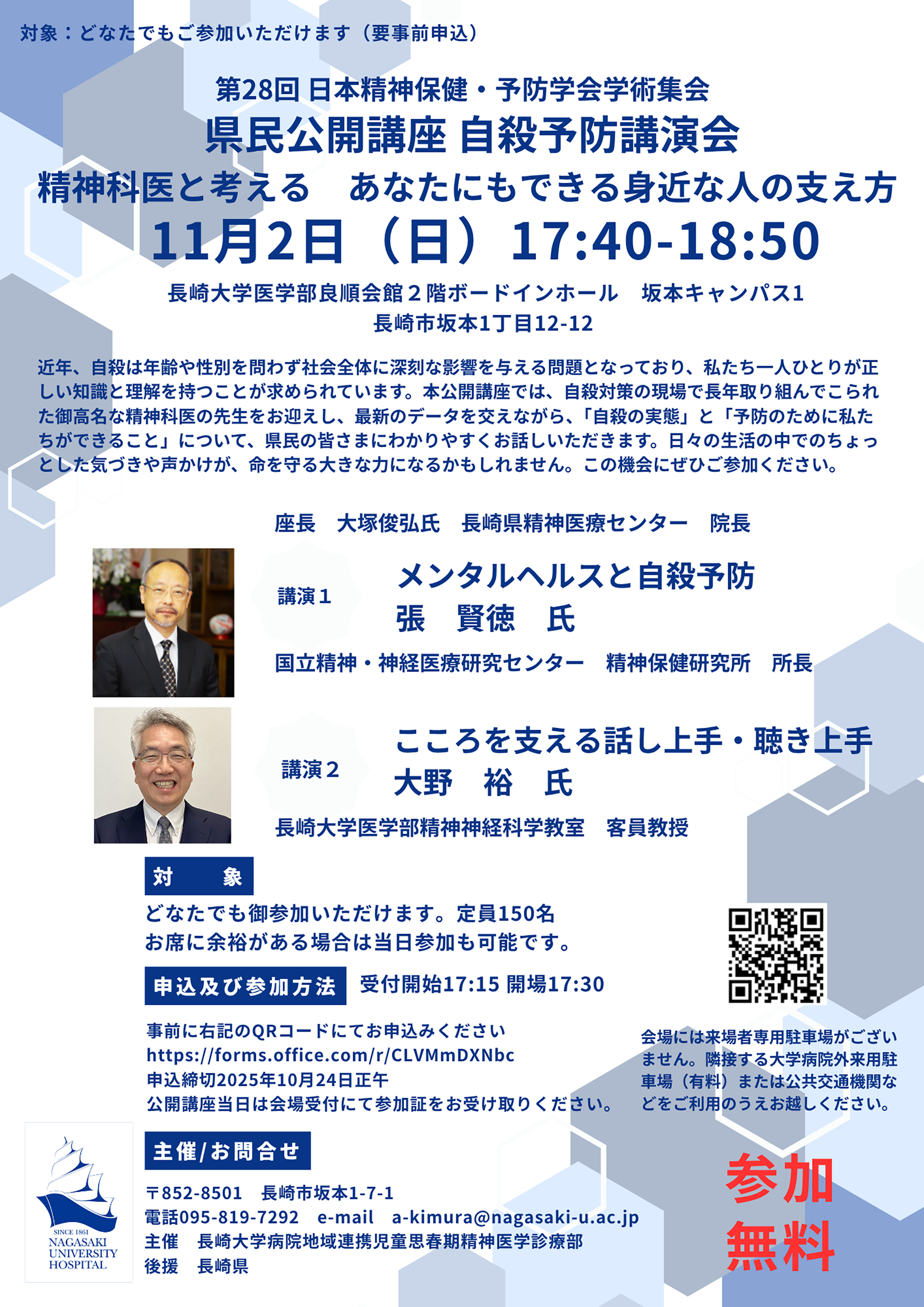 第28回日本精神保健・予防学会学術集会「県民公開講座・自殺予防講演会」