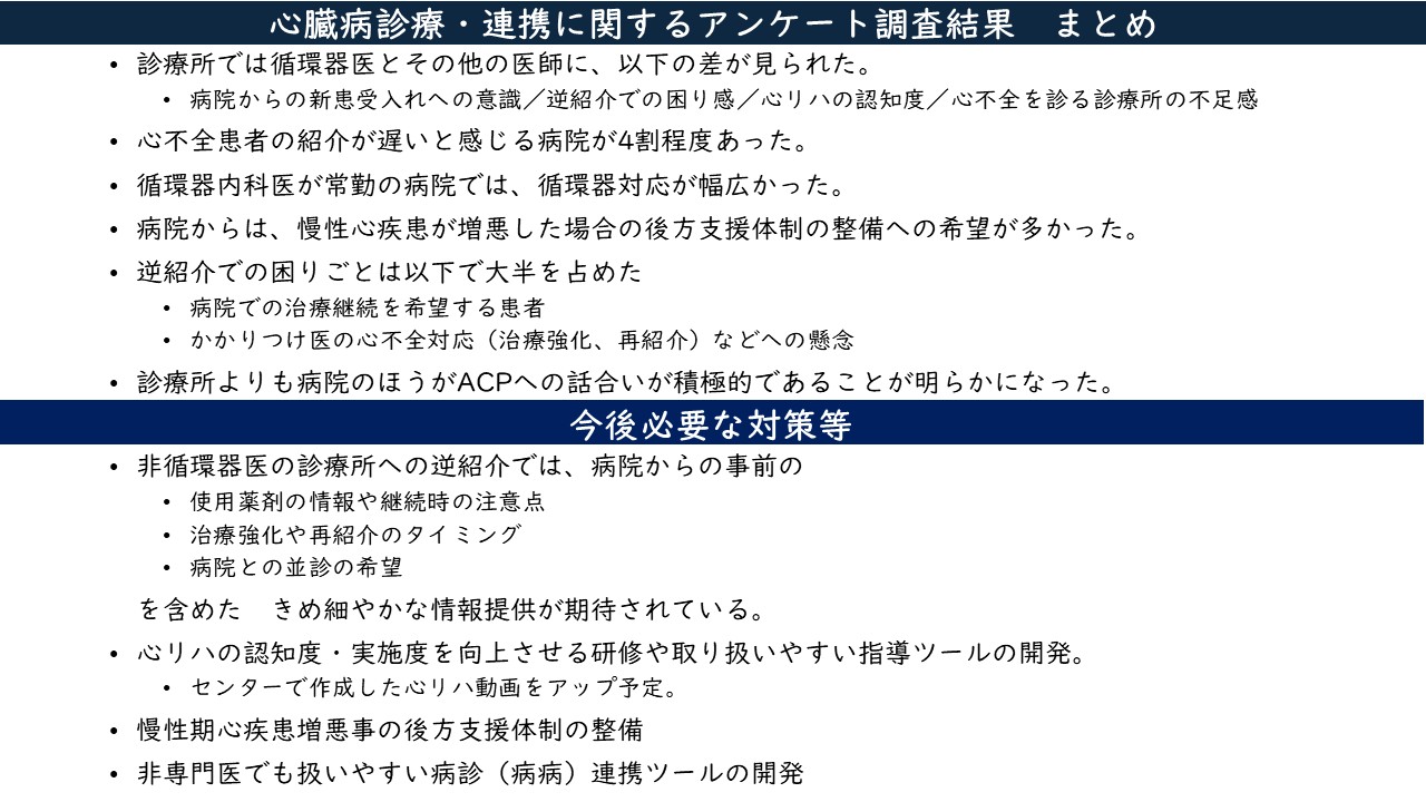 各ディスカッサントから多様な視点で意見が交わされ、長崎県における心臓病患者の医療連携の課題が浮き彫りになるとともに、多くの医療従事者がこのテーマに強い関心を寄せていることが確認できました。今後もさらなる医療連携の強化を図り、心臓病患者の予後改善につなげていきたいと考えています。