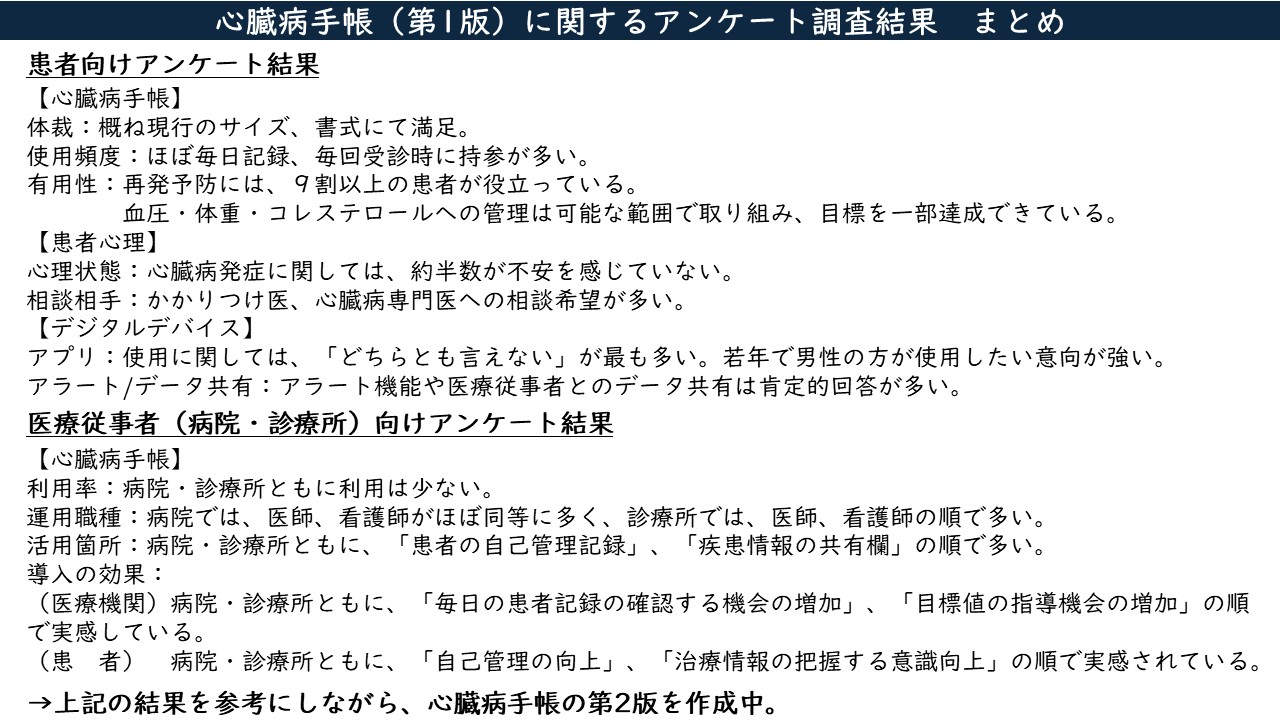 講演2では、長崎大学病院 脳卒中心臓病等総合支援センター長の池田聡司より、心臓病手帳に関するアンケート調査結果をご報告しました。