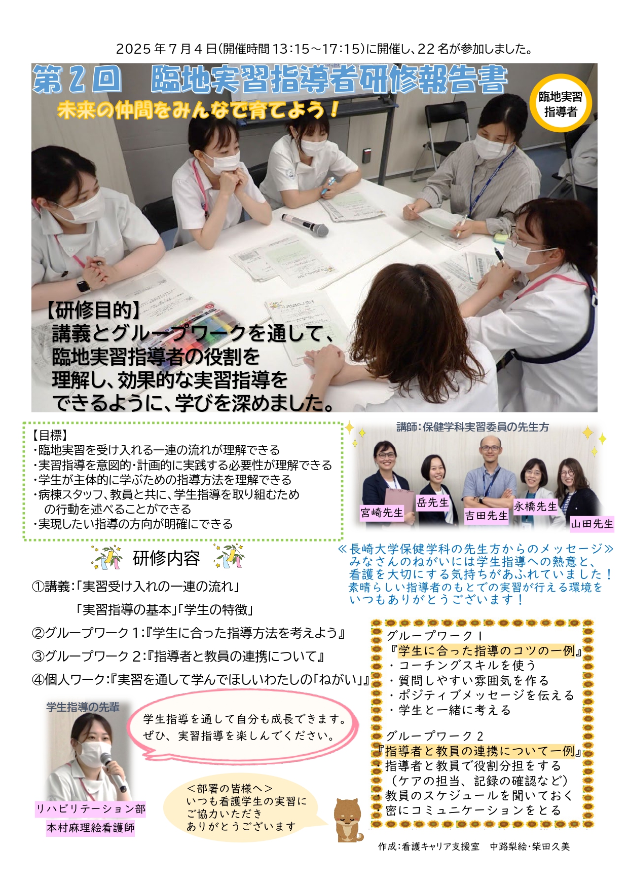 「共に育つ」をテーマに2025年度の実地指導者を対象に全5回のシリーズ研修を開催しました。