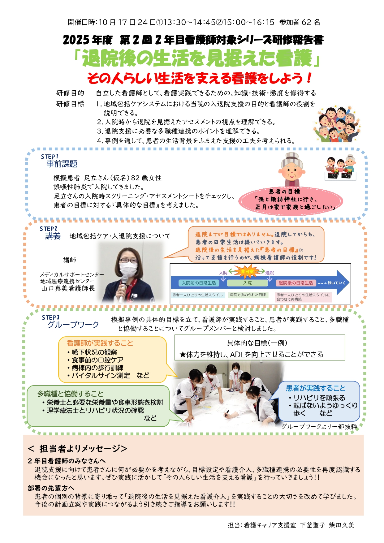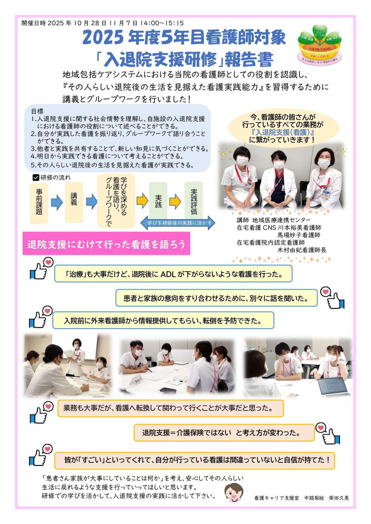 実地指導者の皆さんの「新人看護職員に自立した看護師に育ってほしい」という思いが伝わってくる研修となりました。